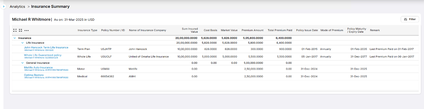 Track life, property, and casualty policies with dedicated fields and reports.