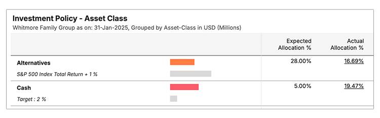 Instantly compare allocations to targets and track adherence.